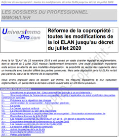 Réforme de la copropriété : toutes les modifications de la loi ELAN jusqu’au décret du juillet 2020 Nous avons regroupé dans ce dossier, par thème, les mesures législatives et leur traduction réglementaire, en présentant la dernière version quand elles en ont connu plusieurs.